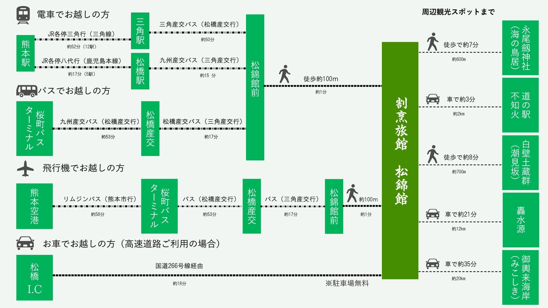 ■駅からのアクセス:JR鹿児島本線(博多~八代) / 松橋駅(7.1km)■バス停からのアクセス:九州産交バス 松橋〜三角線 松錦館前 徒歩1分(66m)■松橋インターチェンジより県道266線経由お車で18分(10km)